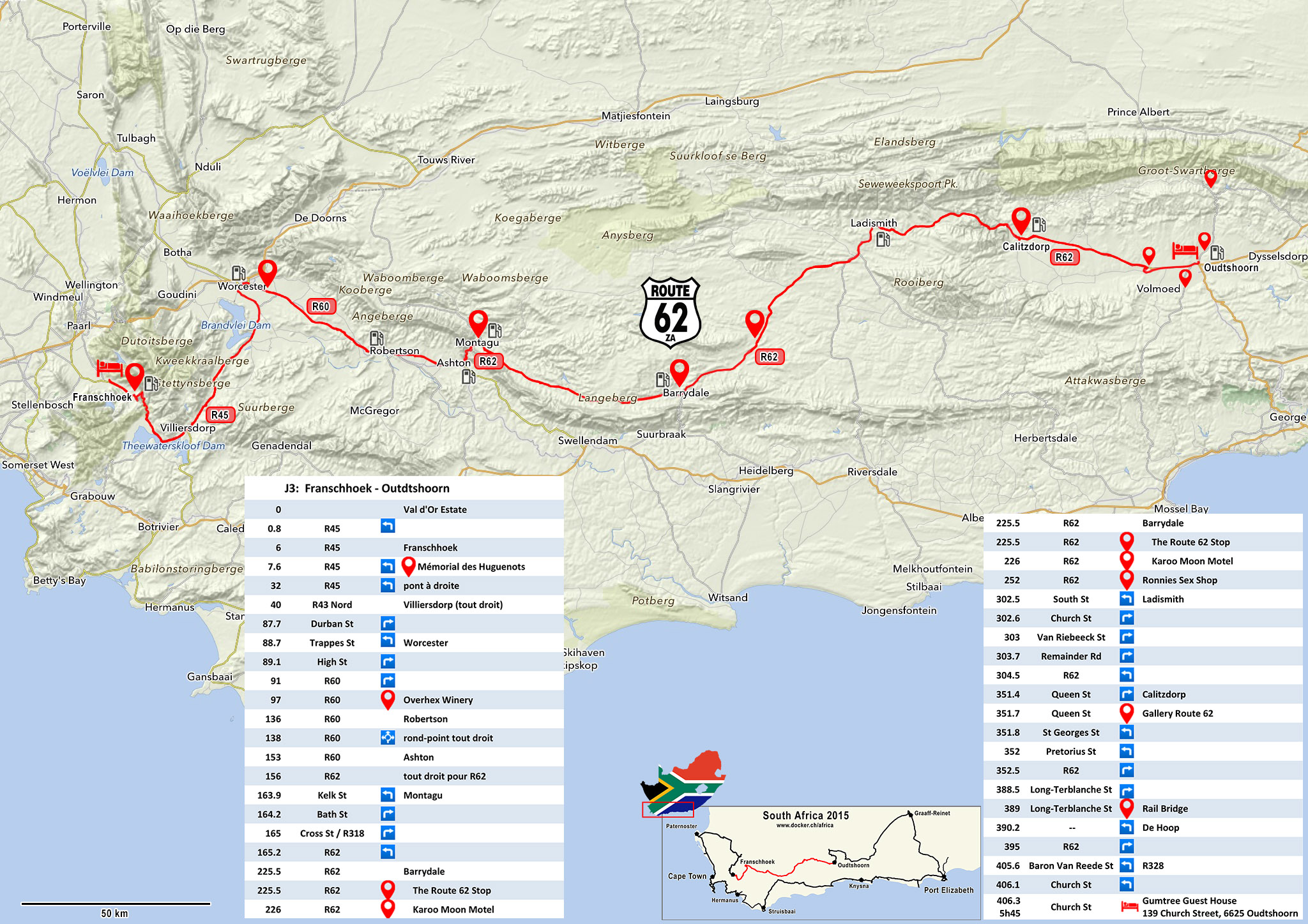 Traversée de la région semi-désertique du Klein Karoo par la toute 62. C’est une route historique au même titre que la Route 66 aux USA. Souvenir du premier voyage à moto en 2006 http://www.docker.ch/route66