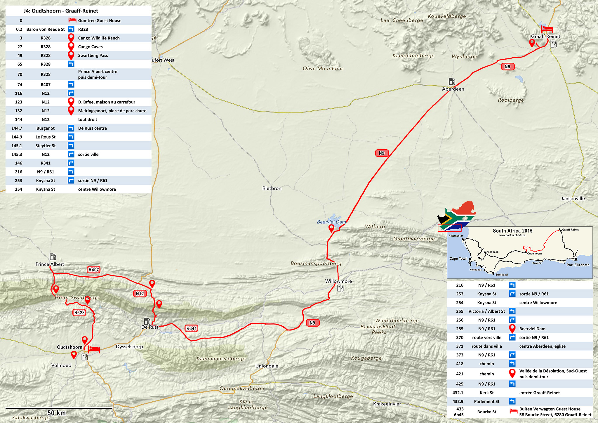 Nuit à Graaf-Reinet, point le plus au Nord de ce voyage, et aussi le plus chaud.