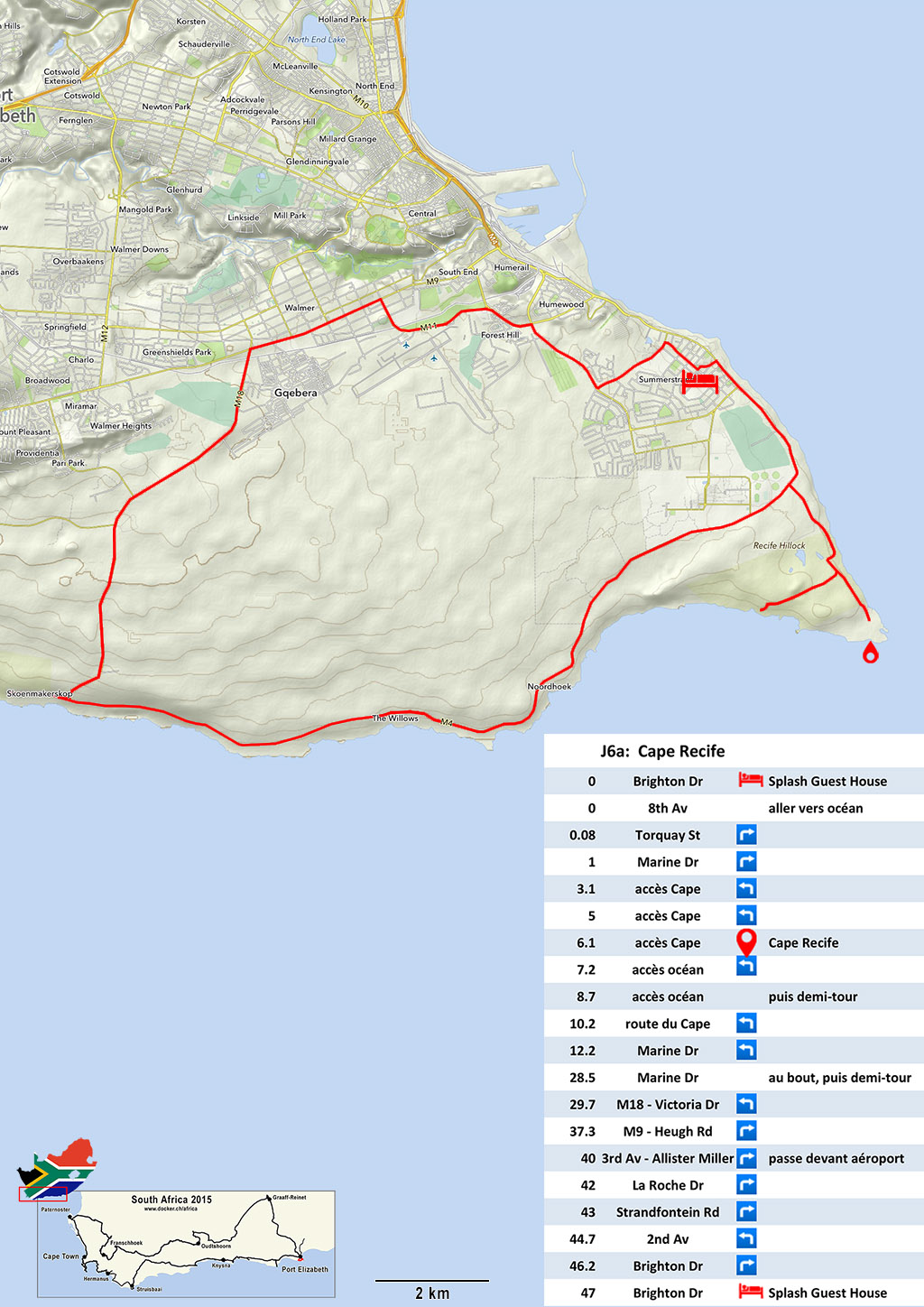 Journée calme et moins de route. Visite pour certains du Parc National des Elephants à Addo (140km) et les autres du Cape Recife (47km), la pointe Sud de Port Elizabeth.
